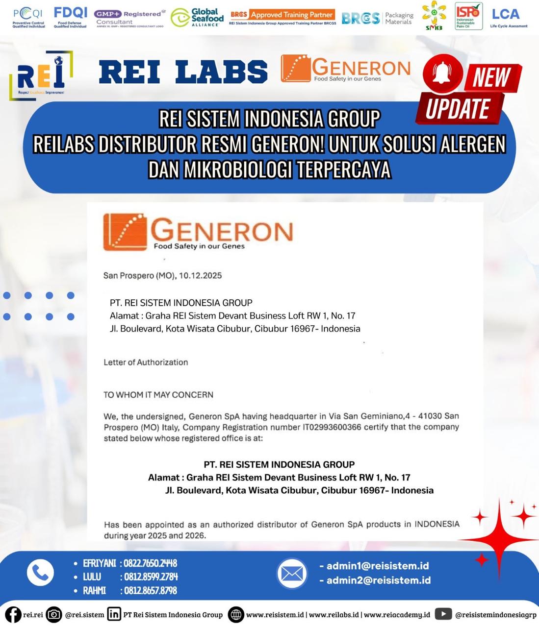 REILABS Telah menjadi distributor resmi Generon. Untuk solusi alergen dan mikrobiologi terpercaya.