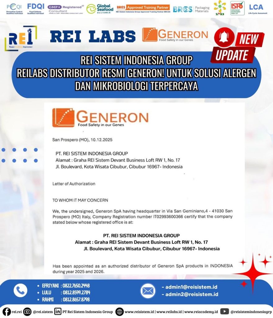 REILABS Telah menjadi distributor resmi Generon. Untuk solusi alergen dan mikrobiologi terpercaya.